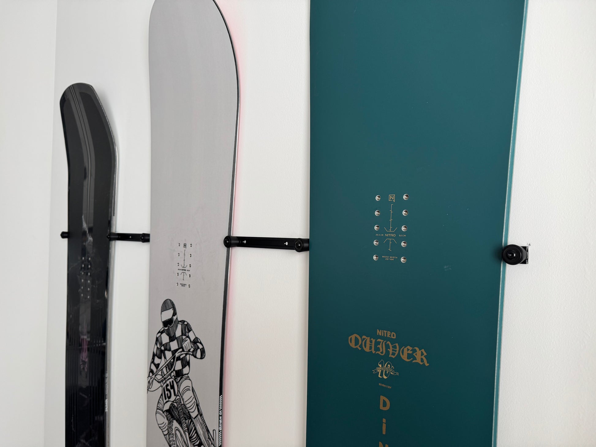 The Snow Quiver Rack is a wall-mounted storage solution designed specifically for skis, snowboards, and winter gear. Built for riders who take pride in their quiver, it transforms cluttered garages and gear rooms into clean, functional spaces.
